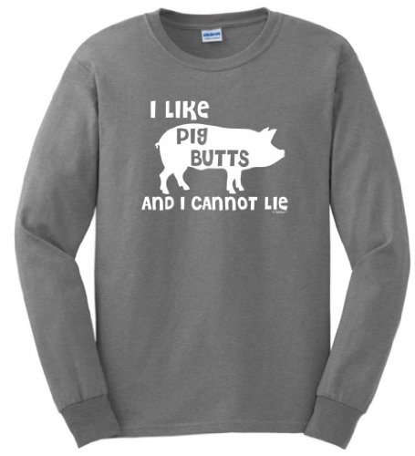 -. Binding : Apparel -. Brand : ThisWear -. Department : mens -. Feature : 100% cotton (preshrunk), Sport Grey has 90%/10% cotton/poly with double-needle neck and hem. For great comfort, it has taped neck and shoulders, rib knit cuffs. / The design is printed with new age printing technology, direct-to-garment. It is printed with a water-soluble and eco-friendly ink. / It is cured with a heat treatment process to ensure the color-fastness and lasting durability of the design. / Designed and printed in the United States. / This is not an unauthorized replica or counterfeit item. This is an original inspired design and does not infringe on any rights holders rights. The words used in the title and/or search terms are not intended to imply they are licensed by any rights holders. -. ProductGroup : Apparel -. ProductTypeName : SHIRT -. Title : I Like Pig Butts and I Cannot Lie Long Sleeve T-Shirt