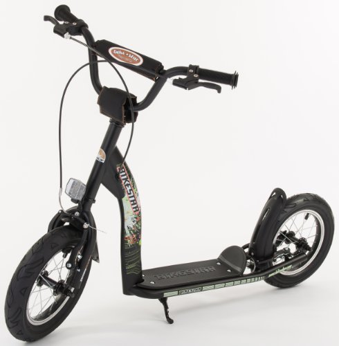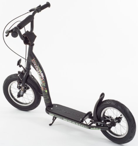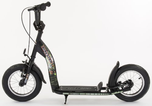 - Feature : Classic scooter designed in Germany with modern steel tube framework and eye popping metallic paint finish. / 12" air filled tires on lightweight, high-quality rims. Dont be fooled by foams or plastics. / Robust rear brake and skid proof foot board makes for a safe and secure ride. / Splash guards/fenders equipped on both wheels. / Adjustable break handgrips and hand protection device makes this scooter ideal for a child's small hands!