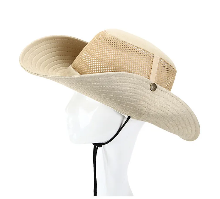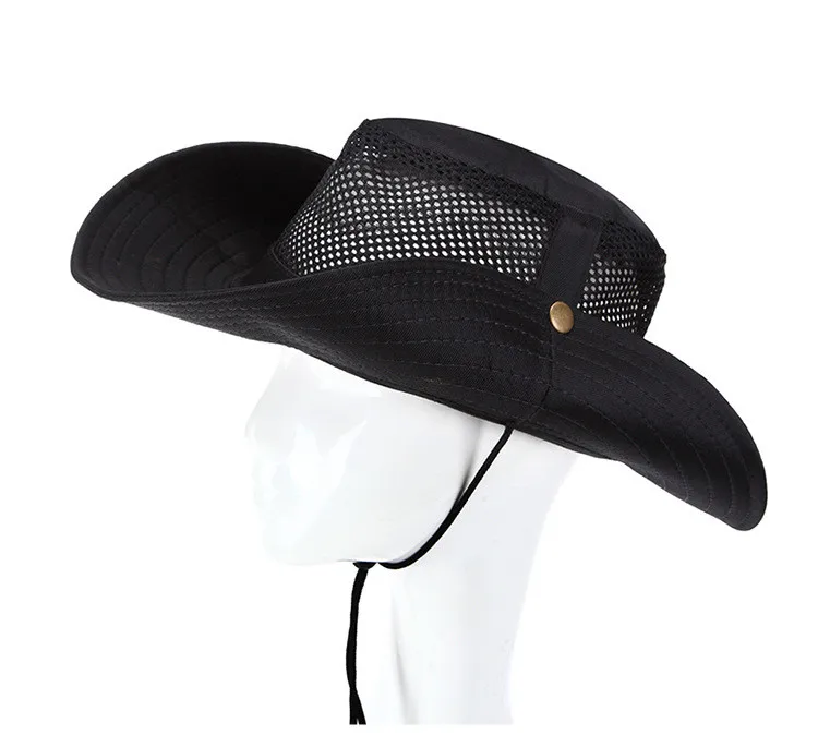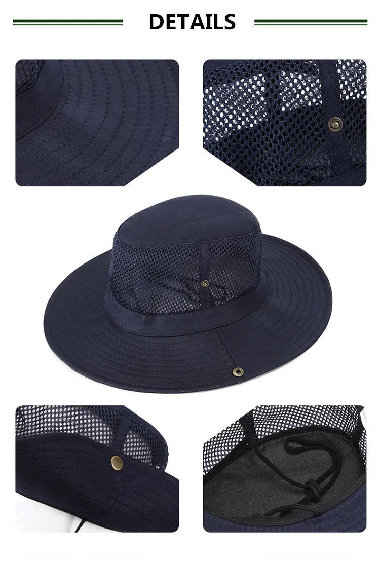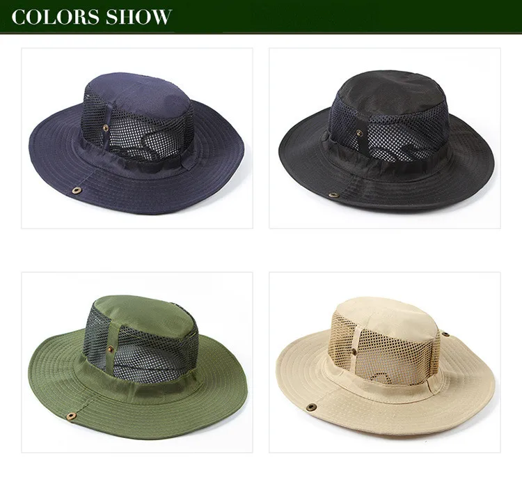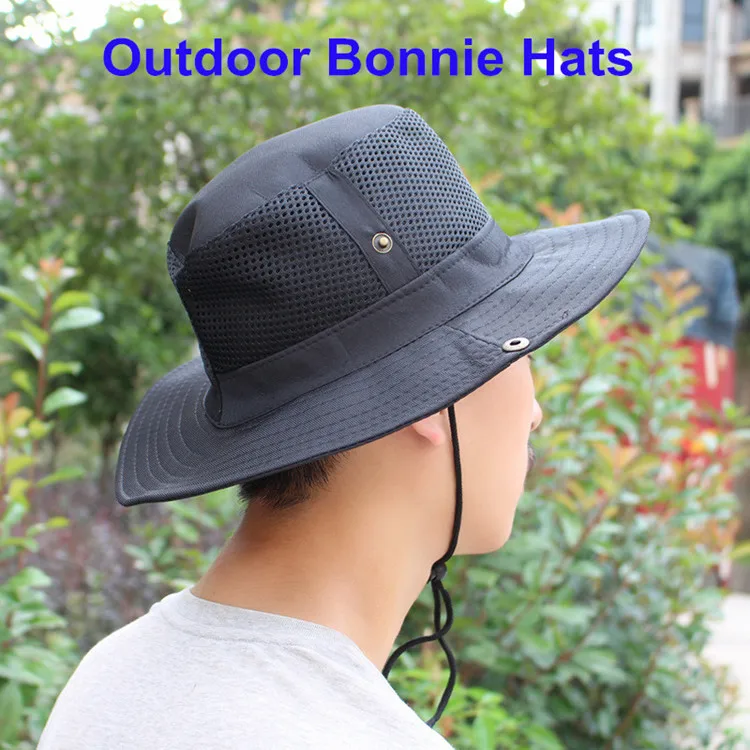 ユニセックスソリッドカラーサンシェードハイキング釣りキャンプキャップ通気性メッシュボニー帽子バケツ帽子抗uv屋外スポーツキャップ