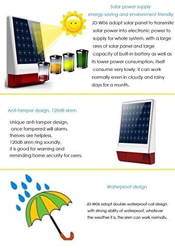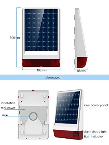 【WATERPROOF】Solar energy charging, no wiring required. Completely wireless setup and fits anywhere you want to protect. Such as on a boat, caravan, motorhome, garage, shed, ect.