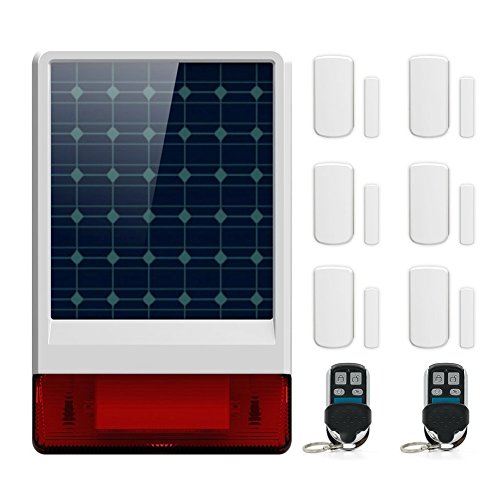 ERAY Home Security Alarm Systems, Wireless Outdoor Waterproof Solar Strobe Flashing Siren with 6 Window/ Door Contact Sensors and 2 Remote Control Keyfobs