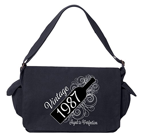 Studio : Tenacitee Publisher : Tenacitee Binding : Personal Computers Product Description Born in 1987 - Aged Like a Fine Wine Brushed Canvas Messenger Bag by Tenacitee. Express yourself! No boring bags here, this messenger bag is custom printed in our Oklahoma shop just for you. Made of 12oz 100% soft brushed cotton canvas this bag is perfect for telling the world what you think while you're out and about town. We use the latest Direct to Garment printing technology for a vibrant and soft print with less wasted ink. The bag is machine washable, has several inside zippered pockets, an interior key leash hook, and a 2" wide adjustable shoulder strap. The bag measures approximately 16"x11.5"x4.75". 0