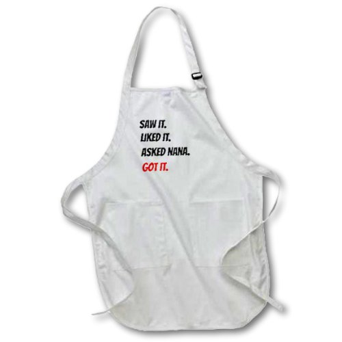3dRose Saw It, Liked It, Nana Got It, black and Red Letters on White Background - Medium Length Apron, 22 by 24-Inch, with Pouch Pockets (apr_180152_2)