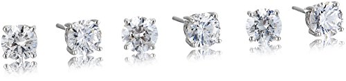 Platinum Plated Sterling Silver Made with Swarovski Zirconia Round Stud Earrings