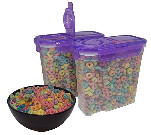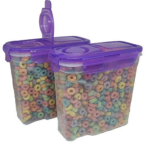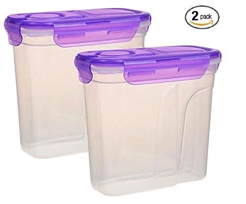 2 Plastic Containers & Clip Lock Lids Set 50oz Cereal Grain Dispenser Dry Food Storage & Organizer BPA Free