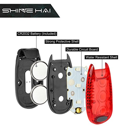 Studio : SHINE HAI Publisher : SHINE HAI Product Description Improved Design SHINE HAI LED Safety Lights are lightweight, slim, compact and super bright. With 3 different models (steady, quick strobe, slow flash), these lights could be used for different condition. Easy to Use Simply clip on or use bounce to your belt, pockets, bike, backpack, helmet, dog's leach, baby stroller, wheelchair or clothing. No tools needed to install it or remove it. Compact and Portable Take the lights with you while traveling. These lights are easy to carry and could be powered by built-in button battery. Just press the button to turn the light on. Stable Lights Remain securely locked in the position even during off-road use. Wide Application The LED light is weatherproof. Rainy or sunny, summer or winter, it could be used in any weather condition and any time. Perfect for running, jogging, walking cycling, strolling, or any other sports especially at dawn, dusk, night or foggy and rainy days, or just taking a peaceful stroll with your dog at night, these LED lights will keep you visible and safe. Package Including 4 x LED Safety Lights 4 x Extra CR2032 Batteries 4 x Velcro Straps 1 x Mini Screwdriver