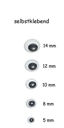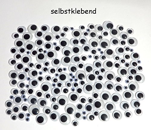 Bastelbar Wackelaugen Selbstklebend - 200 Stuck - 5 Grossen - von 5 bis 14 mm