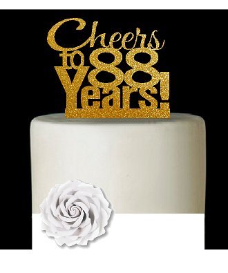 CakeSupplyShop Item#088CTA - 88th Birthday / Anniversary Cheers Super Gold Glitter Sparkle Elegant Cake Decoration Topper