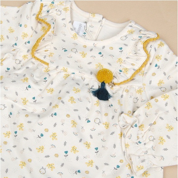 앞 가슴부분 러플에 레이스를 배색하여 러블리함을 더하였습니다.