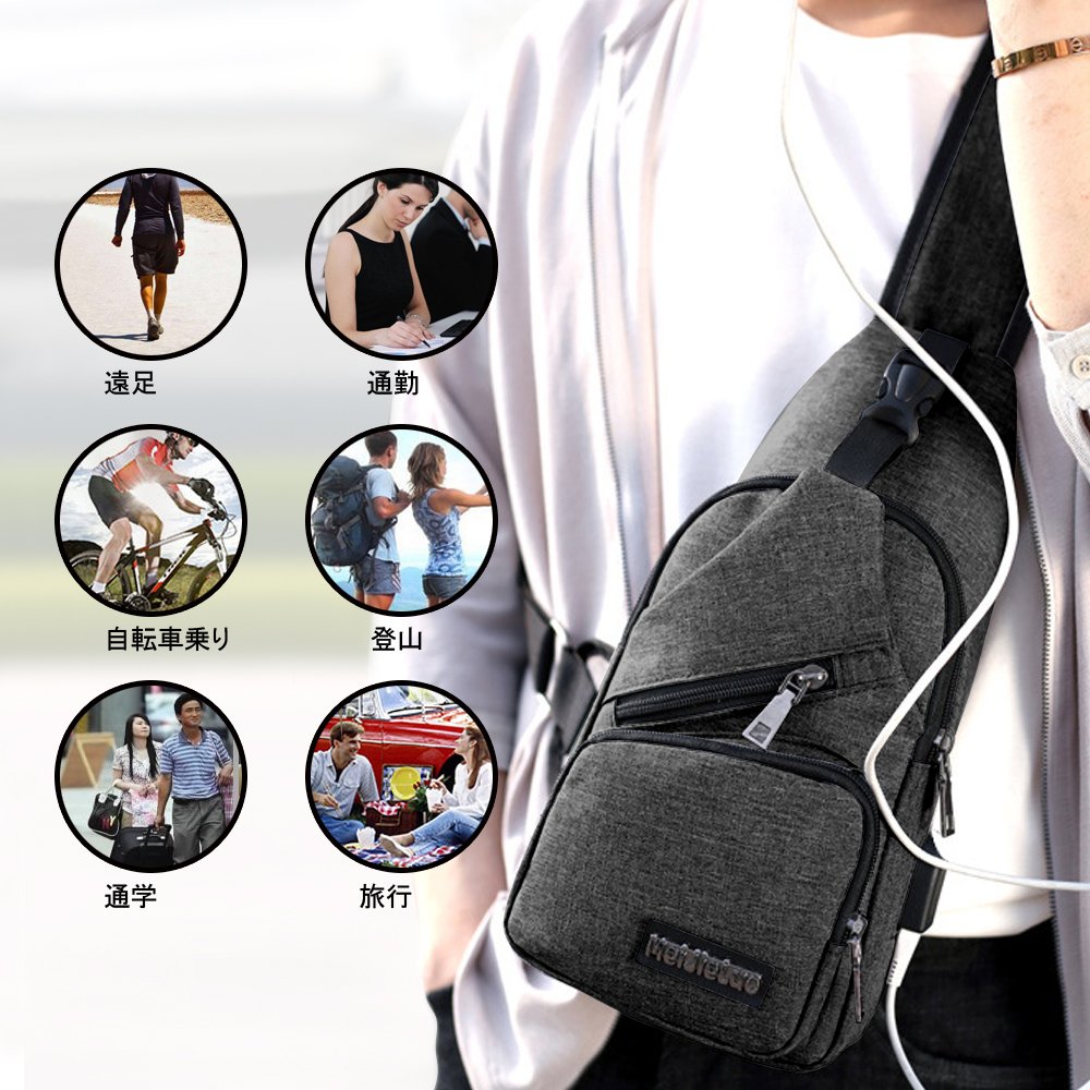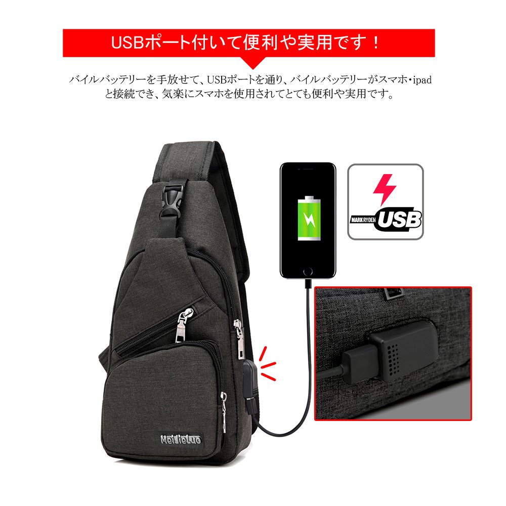 When the mobile battery is inside the body bag, you can connect the supplied cable through the USB port, connect the smartphone to the mobile battery, and charge the smartphone / tablet.