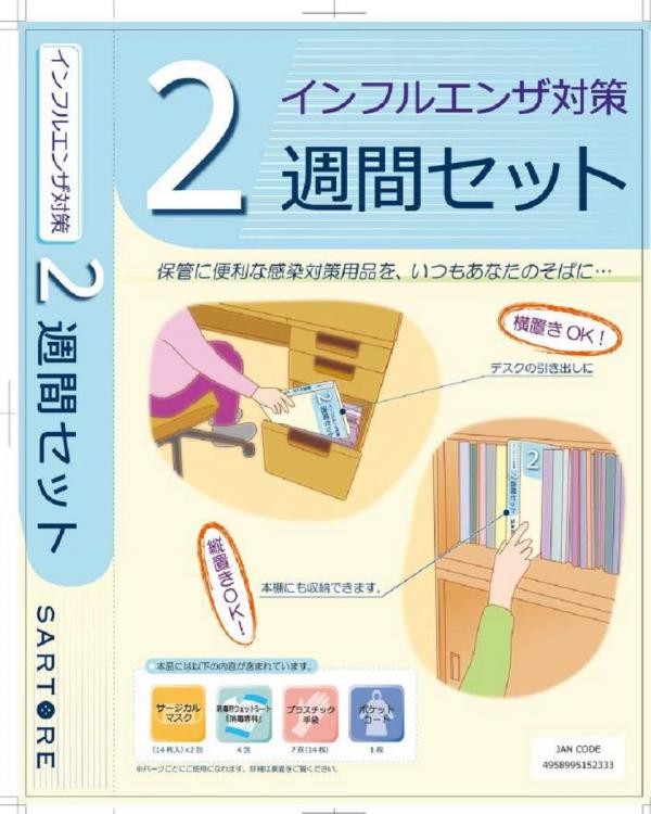 | 製造国 | 日本(消毒シート)、中国(マスク、ポケットコート、プラスチック手袋) |