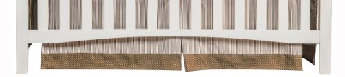 -. Feature : 3 piece crib bedding set includes: quilt, fitted crib sheet, crib skirt / Quilt: 35" x 45"; Crib sheet: fits a standard 52" x 28" crib mattress; Skirt: 15" drop / Quilt/sheet: 100% cotton; Skirt: 100% cotton, white decking / Machine wash / Coordinating room accessories and cocoa mint crib bumpers sold separately