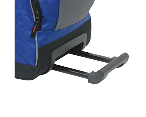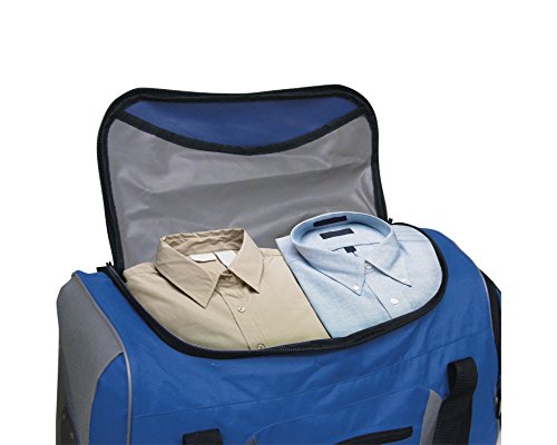 -. Brand : Traveler's Club -. Color : Various -. Department : unisex-adult -. Feature : Made of 600D polyester, sturdy telescopic handle and in-line skate wheels / Spacious bottom compartment for lage style packing and zippered front shoe pocket separates wet or dirty articles from other articles / Bungee cord on top and a padded mp3 player pouch ensures the safety of your tunes / Zippered spacious front pockets, 2 zippered side pockets and U-shaped opening to main top compartment / Dimensions: 22" L x 13" W x 13.5" H - 3 lb -. Label : Traveler's Club -. Manufacturer : Traveler's Club -. MPN : 57022-PARENT -. NumberOfItems : 1 -. PackageQuantity : 1 -. PartNumber : 57022-PARENT -. ProductGroup : Apparel -. ProductTypeName : LAGE -. Publisher : Traveler's Club -. Size : One Size -. Studio : Traveler's Club -. Title : Rolling Sports Duffel