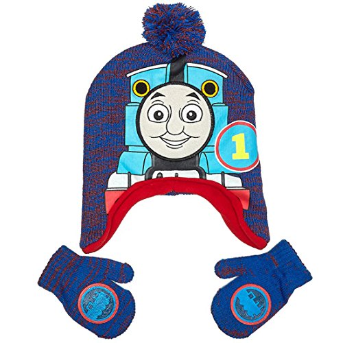 Product Description Toddler boys will love wearing this Thomas the train winter hat and mittens! The hat covers ears and has inside fleece. Super cute blue and red with pom pom on top of hat. 0