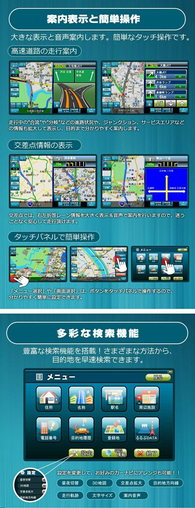 ● You can route directions to narrow streets throughout the country.