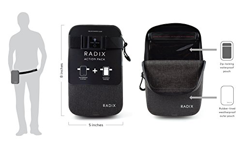 -. Binding : Apparel -. Brand : Radix Products -. Feature : Weatherproof outer pouch and waterproof inner pouch / Outer pouch protects from splash and rain, using rubber-lined waterproof fabric / Inner pouch designed to be submerged without damaging contents / Built with high quality weather-resistant materials / Includes Fidlock magnetic clasp that allows for easy on and off -. IsAutographed : 0 -. IsMemorabilia : 0 -. Label : Radix Products -. LegalDisclaimer : Radix Products is not responsible for damage caused to personal products due to water or impact. Please use caution when using the Action Pack in or near water. -. Manufacturer : Radix Products -. ProductGroup : Apparel -. ProductTypeName : ACCESSORY -. Publisher : Radix Products -. Studio : Radix Products -. Title : Radix Action Pack - Double Waterproof Waist Pack