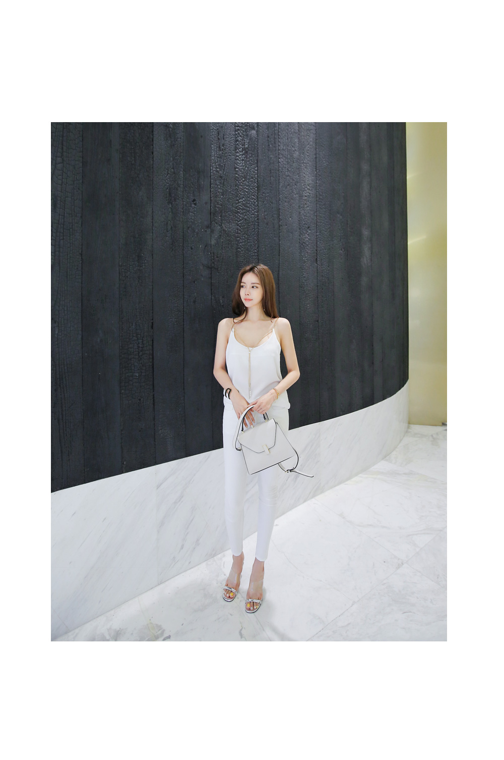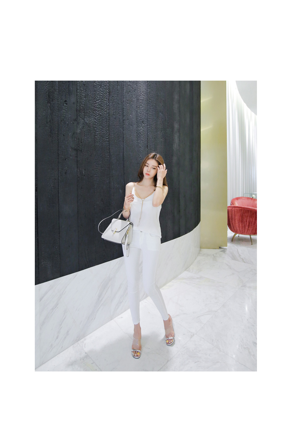 한층 여리여리해 보이는 쇄골 라인을 연출해 주구요.