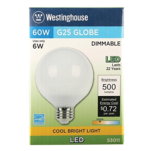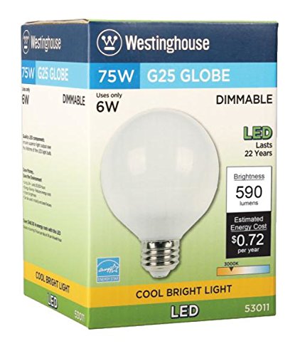 Westinghouse 5301120 75-Watt Equivalent G25 Dimmable Cool Bright LED ENERGY STAR Light Bulb with Medium Base (6Pack)