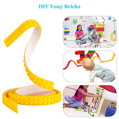 YOUR CHILDREN CAN PLAY, LEARN AND GROW We truly believe in learning by playing, and we engorge family time Your child will build awesome things with his brothers/sisters, and even you can jump in for quality time. WHY CHOOSE US? EASY TO USE: Peel off the block tape building toy on back and building block tape is ready to stick on any surface! Press the adhesive tape makes it sturdy sticky where you need it. Reusable (200 times) Our building block tape can be reused 200 times Cuttable: Soft silicone block tape allows you to cut free, according to your preferences Washable: No problem to wash more than hundreds of times , please kindly note after wash just use towel to dry and wait about 2 mins , you can use it again. Note: Lego toys on the picture are not included in the package. 0