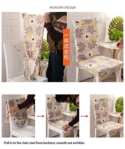 -. Feature : Dining Chair Covers-4 pcs / Made of stretchable fabric, 95% polyester, 5% spandex, fit it like glove / Suitable for chairs: backrest height 45-60cm, backrest width 40-50cm, seat width 40-50cm, chair seat length 40-50cm, please measure your chair before purchase. / Dress up your old chair, protect your chairs from cat's scratches / Machine Washable