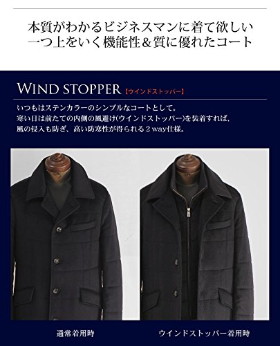 -. Feature : ウインドストッパーは3カ所のファスナーで取り外しができます。 / (No. 02000100 r ) / ●デザイン 英国の雰囲気が漂うステンカラーの紳士用コートです。余計な装飾を省き、飽きの来ないシンプルなデザインに。お尻が隠れる丈で、冷えやすい腰回りも防寒します。●素材 カシミヤを織り交ぜたウール生地を使用。しなやかさと絶妙なウォーム感、上品な光沢がさりげなく入り、高級感が漂います。 ●スタイル高い防寒性能と、充実した機能性で、普段着からビジネスシーンまで活躍します。ウインドストッパーを取り外せば、長いシーズンで着る事ができます。 ≪単位cm≫ / 【サイズ】 着丈/胸周り/肩幅/袖丈/アームホール【M】 88/102/46/62/50【L】 89/106/47/63/52【LL】 90/110/48/65/54【3L】 91/114/49/67/56 【重量】約1330g 【素材】表地: ウール90%、カシミヤ10%裏地: ポリエステル100%襟裏: 合成皮革 【原産国】中国 【裏地】あり 【留め具】本体:丸ボタン(水牛)×5ウインドストッパー:ファスナー 【ポケット】外側:胸ポケット×1、左右1つずつ内側: 左右ボタンつきが一つずつ