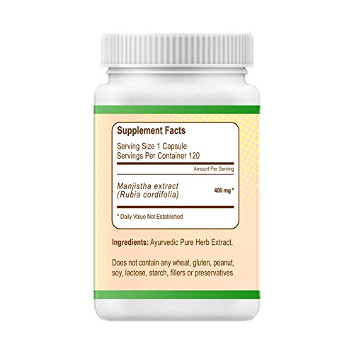 -. Title : Panchaveda Manjistha 400 mg Extract (120 Veg Capsules) Organic Natural Ayurvedic Herbal Blood Purifier Supplement - Rubia Cordifolia Indian Madder For Healthy Clear Skin Complexion Detox Acne Pimples