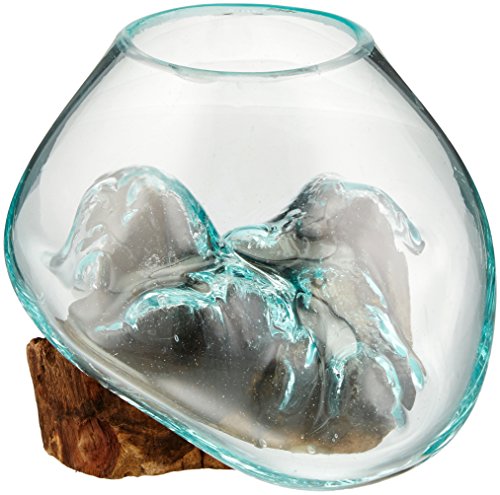 Beautiful molten glass is heated and placed upon a hand selected piece of teak wood, so that the perfect marriage between glass and wood is created. The glass can be used for atrium use, varying plants such as succulents and air plants, sea stones, candles and also just as they are. Because each piece is a unique piece of art, all shapes are different and sizes are approximate.Feature