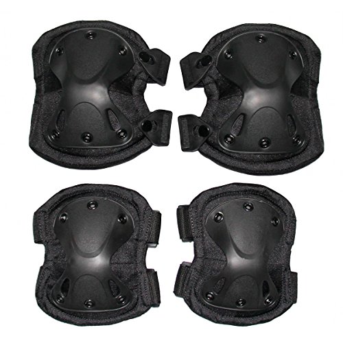 -. Brand : Kiwivalley -. EAN : 0712367271688 -. Feature : 1 pair of knee pads, 1 pair of elbow pads / Made of durable, soft EVA padded material with tough plastic plates and lightweight construction for low drag. / Soft cushion pad on inner side. High-density foam for superior shock absorption. Designed to Give Full Range of Motion While on the Battlefield. / Multiple adjustable elastic straps and velcro closures for secure fit for various elbow & knee girths. / Great for crawling, mountain biking, Motorcycle racing, skating, scooters, extreme sports, airsoft, paintball, hunting and shooting games and other outdoor activities. -. IsAutographed : 0 -. IsMemorabilia : 0 -. Label : Kiwivalley -. Manufacturer : Kiwivalley -. MPN : K034 -. PartNumber : K034 -. ProductGroup : Sports -. ProductTypeName : OUTDOOR_RECREATION_PRODUCT -. Publisher : Kiwivalley -. Studio : Kiwivalley -. Title : Kiwivalley 4-in-1 Tactical Knee and Elbow pads, in Skating, Skateboarding, Biking, Outdoor Sports Protect Your Elbows and Knees - (Black) -. UPC : 712367271688
