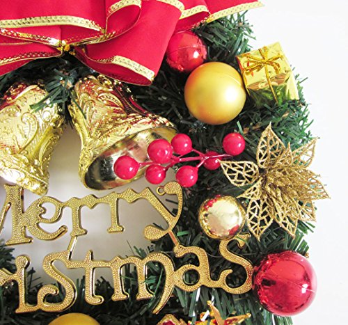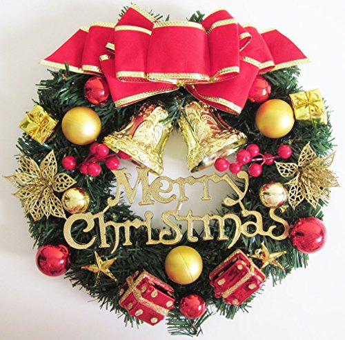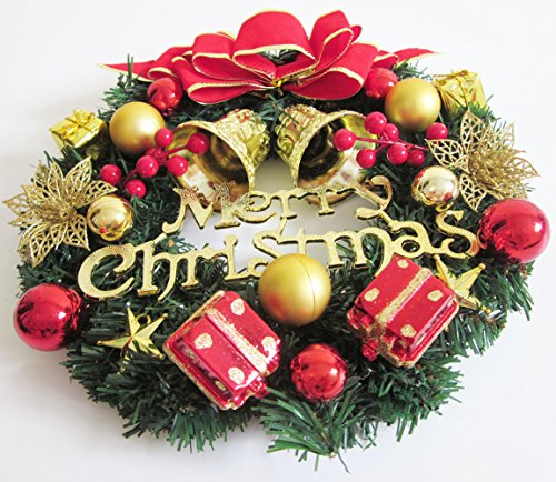 Artfen Christmas Wreath Christmas Tree Wreath Door Wall Windows Garland Artificial Pine Wreath For Christmas Party Home Decoration Approx 13 Inch In Diameter WIth Balls Bowknot Bells Berries Gift Box