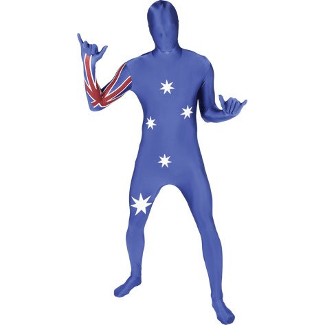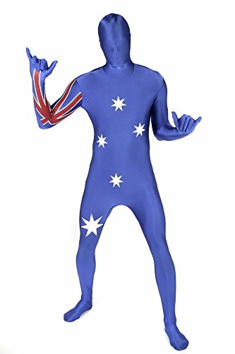 Morph Costumes Morphsuits are the most popular costume brand in the world with over 1.3million Facebook fans. Original Flag Morphsuits are all-in-one spandex costumes that cover the whole of your body from head to toe. You can breathe through them, drink through them and see through them but no one can see you! If you want to show your face just unzip the hood and tuck it in. Great For Parties Morphsuits come in 100 different colors and patterns, from black to blue, tuxedo to tie-dye, superheroes to scary. Australia Original Flag Morphsuits are the perfect Halloween costume. They are also great costumes for parties, graduation, charity events, school spirit and sport events. The Size For You Original Flag Morphsuits are very stretchy so sizing shouldn't be an issue. We have 4 sizes based on height: Medium 5”-5”4 (150cm-162cm); Large 5”5-5”9 (163cm-175cm); XLarge 5”10-6”1 (176cm-185cm); XXLarge 6”2-6”9 (186cm-206cm). Imported. Wash in cold water 0 |
