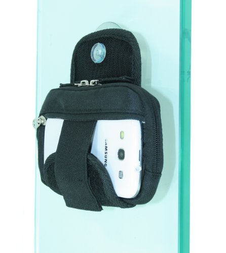 -. Feature : Black Smartphone Case and Wallet with patented design to include a built-in suction cup for taking SELFIES! That's right, you can unfold the rear flaps to expose the suction cup to stick onto a mirror. / Once you stick the pouch to a mirror, you can then set a camera timer, insert your phone into the pouch, step back and POSE!!! #Amazing / This high quality zipper pouch is perfect for travelers that want to keep their phone safe, and also hold wallet items. This pouch will fit phones up to 5 inches long, any width. / This patented bag design lets you take hands free pictures or you can record video. The built-in suction cup will hold 5 lbs, and can suspend from glass for a long period of time. / This bag can be strapped via Velcro to a should strap, or backpack strap for easy carrying. The interior consists of a soft fuzzy lining to keep phone nice and snug.