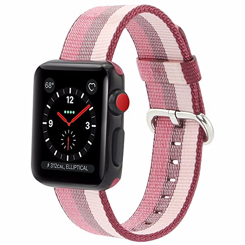 -. Feature : Designed for 38mm Apple Watch Series 3, Series 2, Series 1, +, Sport & Edition. Suitable for 6.4"-7.9" wrist / Made from durable nylon weave with more than 500 threads together with a unique, colorful pattern / Lightweighted with a fabric-like feel, ultra comfortable next to your skin / High performance long-lasting connectors, easy to install and uninstall / Various beautiful stripes available, you can always pick a proper color to go along with your dressing styles