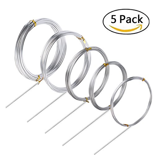 Silver Aluminum Craft Wire, 5 Sizes (1 mm, 1.5 mm, 2 mm, 2.5 mm, 3mm in Thickness) Bendable Metal Wire for DIY Sculpture and Crafts, 5 Rolls, Each Roll 16.4 Feet, Aunifun