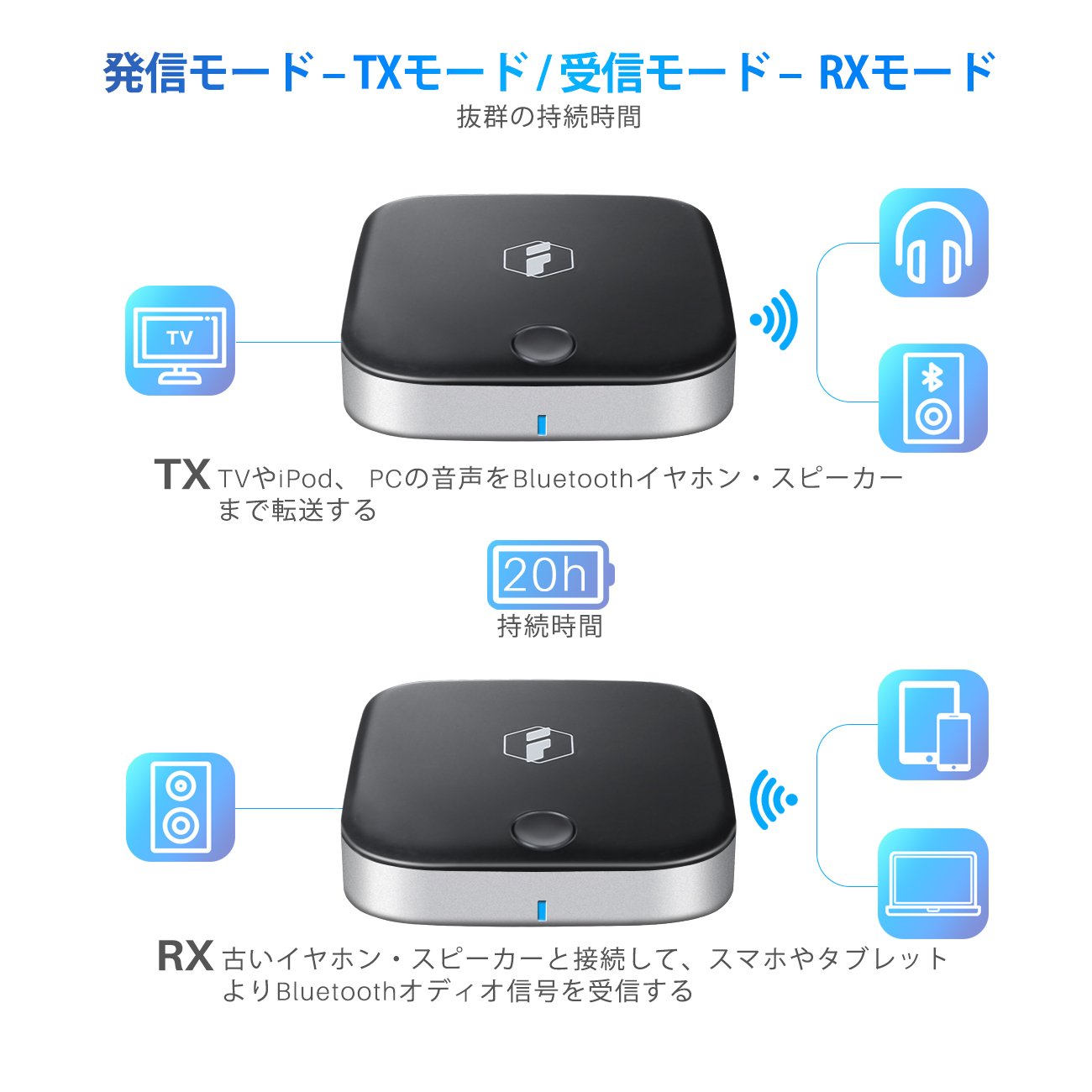 Devices such as TV and PC that do not support Bluetooth function originally can connect with this product and can send Bluetooth audio signal.