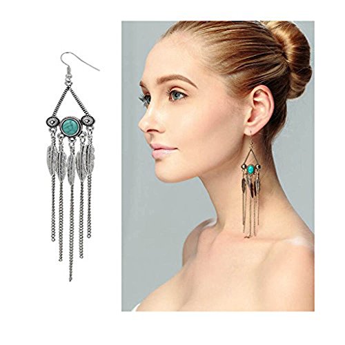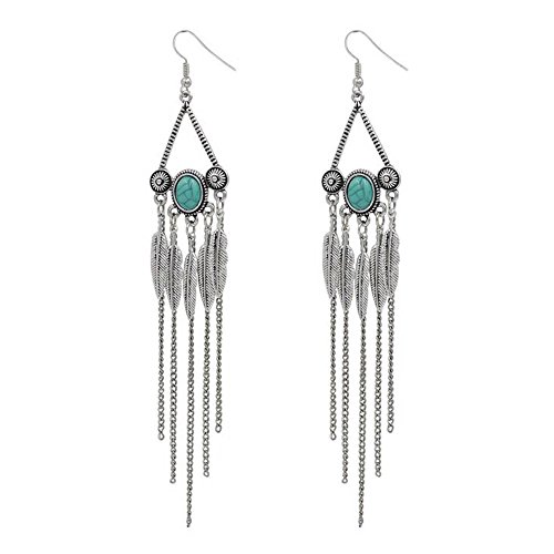 Venusvi Feather Tassels Fashion Lady Clear Crystal Earrings for Women and Girls (Silver)