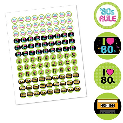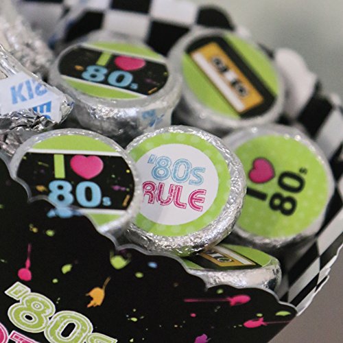 80's Retro - Totally 1980s Party Round Candy Sticker Favors - Labels Fit Hershey’s Kisses (1 sheet of 108)