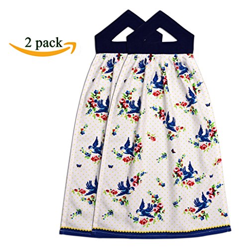 Printed Hanging Kitchen Hand Towel or Dish cloth Set | 100% Cotton | 16x21 in | 2 pack in New Blue Design | 190 GSM