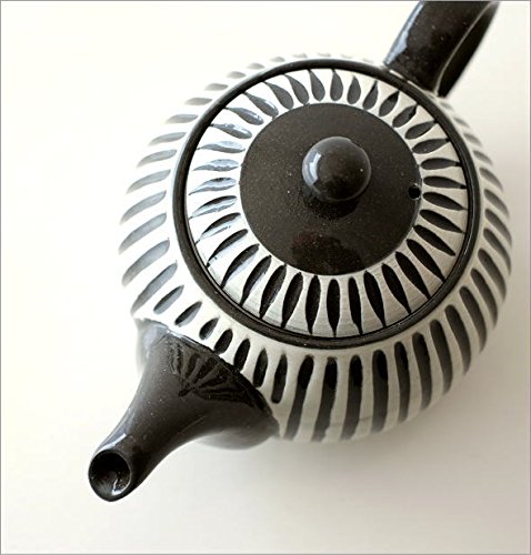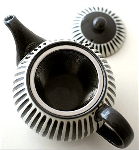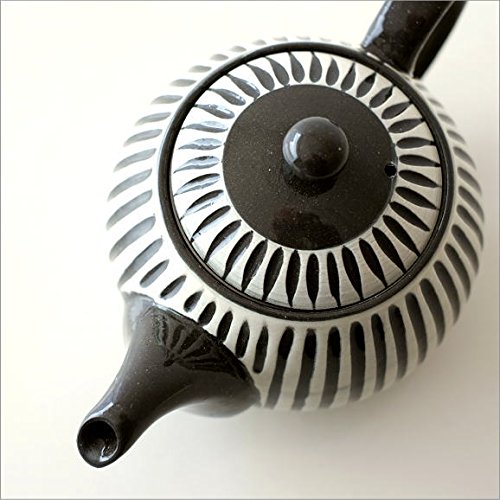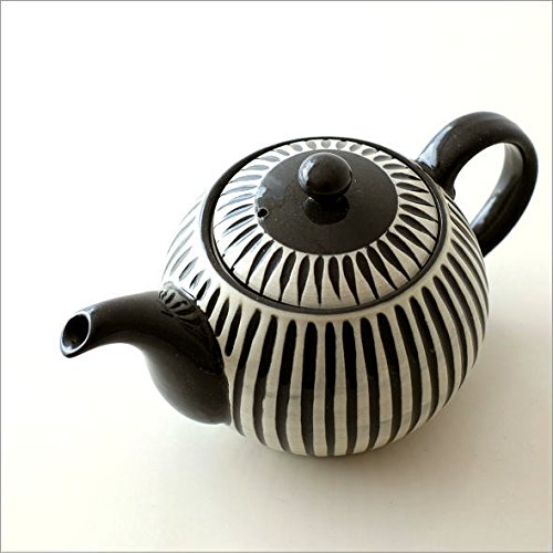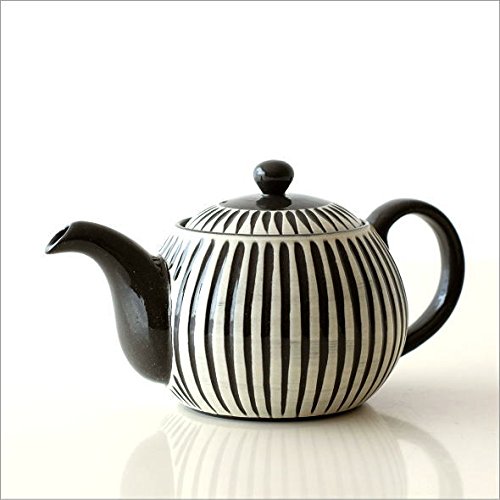 《기기》living 티 포트 도기 디자인 멋쟁이 규스(차 주전자)흑 도쇄모솔(귀얄) 줄무늬 포트 [msg1786]