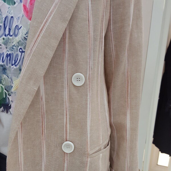 스트라이프 마혼방 심플 더블자켓입니다.라인없이 일자핏이라서 슬랙스,캐주얼 연출이 가능하면 소매를 접어서 올려입으시면 스탈일리쉬한 느낌!!!