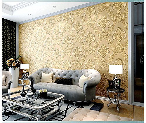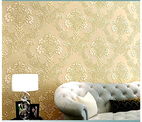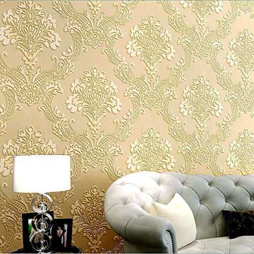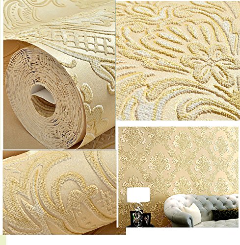 HaokHome 1011 Luxury Damask Flocking Textured Wallpaper Roll Cream/Yellow Modern Home Room Decoration 20.8" x 393.7"