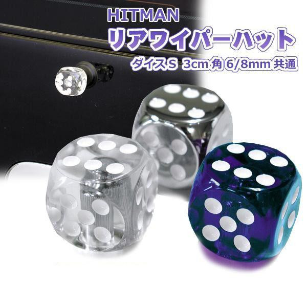 約3cm角の透明樹脂製のダイス(サイコロ)型のリアワイパーマスコット。