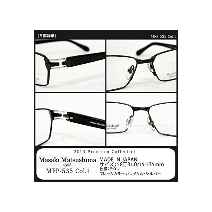 원본상품명: (マサキマツシマ)薄型非球面レンズ付 Masaki Matsushima MFP-535 Col.1(ガンメタルシルバ)レンズ付メガネセット(度付き)