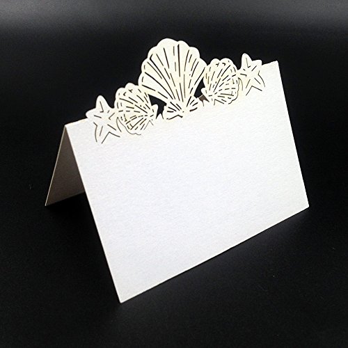 - This is Seashell Beach Themed Pattern Wedding Party Table Guest Name Paper Place Card.