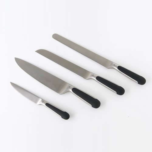 스테《후노죠반노니》가디자인했다『MAMI(《마미》)』키친 나이프(부엌칼)시리즈.이쪽은 그 중의쇼트나이프,햄 나이프,브레드 나이프,키친 나이프각1개씩,합계4개를세트로 한 아이템입니다.나이프의 칼은 1.4116단조 스틸제입니다.칼과 핸들 부분의 이은자리가 없기 때문에 위생적으로도 다루기 쉽고, 핸들에는 수지를 사용하여 미끄러지기 어려워 되고 있습니다.요리 좋아하는 분에의 선물로도 추천입니다.