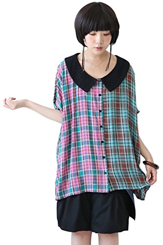 -. Title : (ソマリ) somari ニュアンス チェック柄 ブラウス 半袖 レディース トップス シャツ ゆったり フリーサイズ オシャレウォーカー