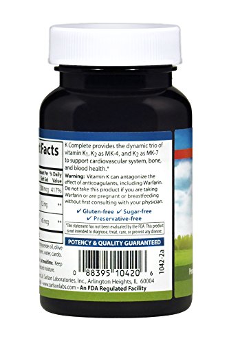 Vitamin K is important for helping our livers produce blood clotting proteins and also directs calcium to our bones, supporting arterial and bone health. Unfortunately, it's difficult to get enough vitamin K through diet alone, which is why a supplement can be a great option. Each soft gel of K Complete provides 500 mcg of vitamin K1, 1.5 mg of vitamin K2 as MK-4, and 45 mcg of vitamin K2 as MK-7 for a powerful kick of K. Add vitamin K--the "forgotten" but vital nutrient - to your diet with K Complete.
