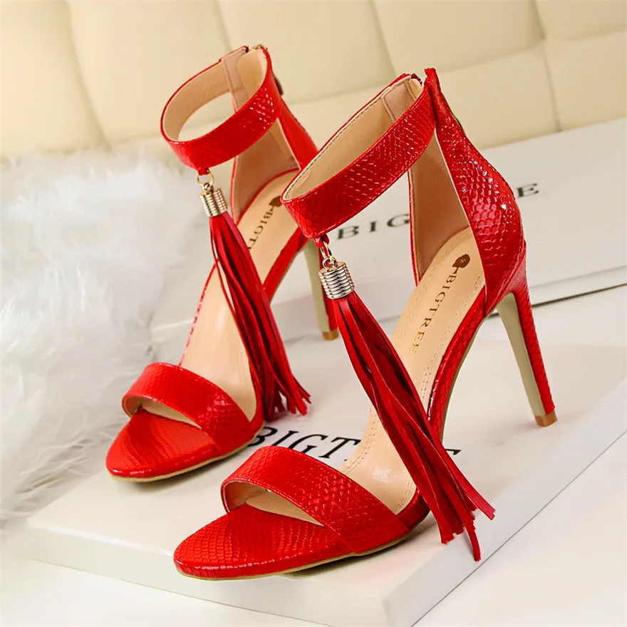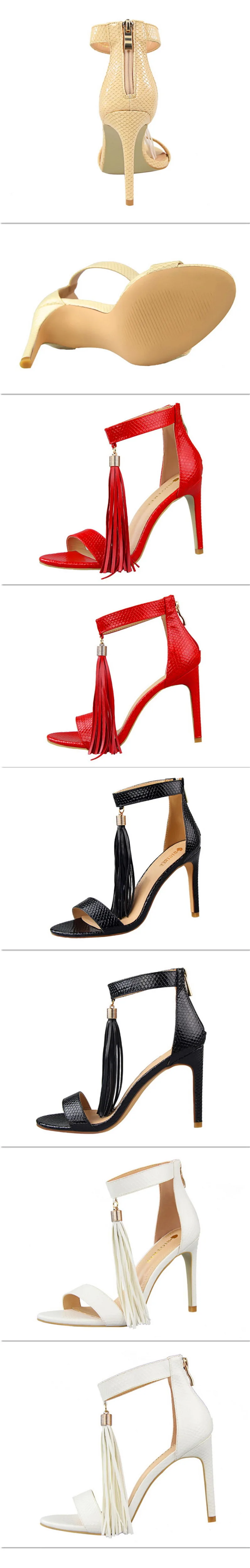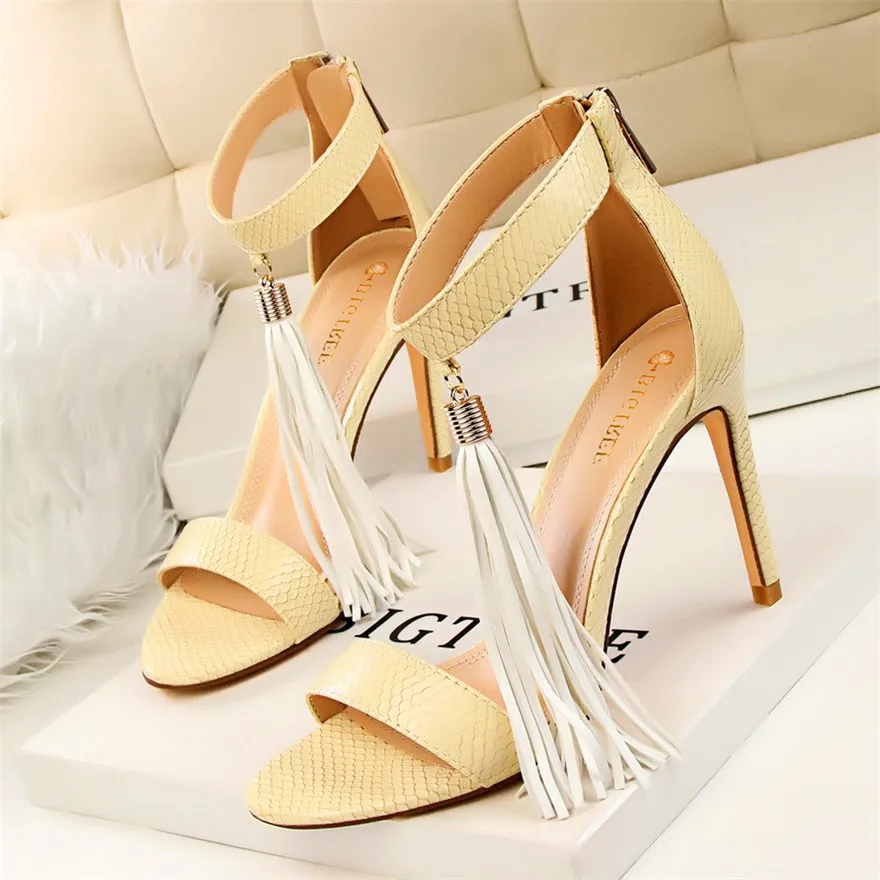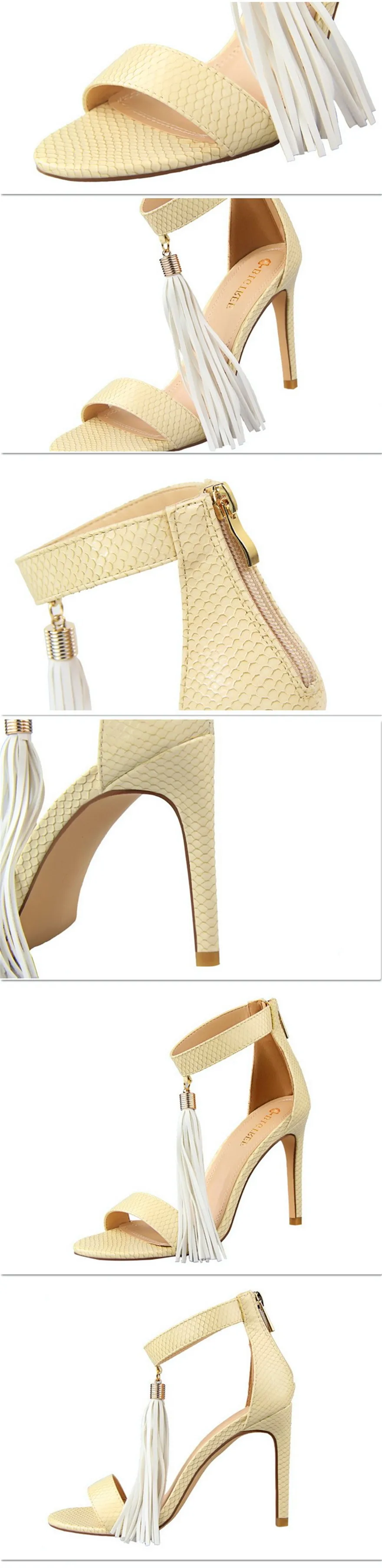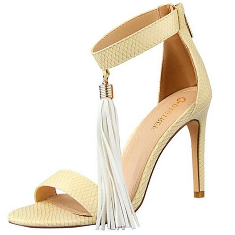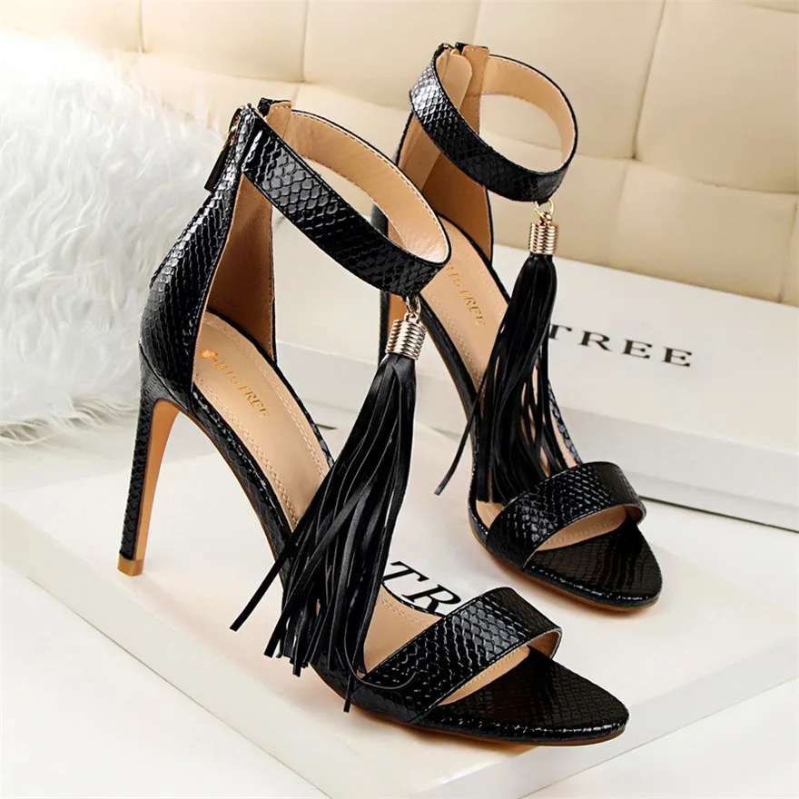 Item:Thin Heels Open Toe Fashion Fringe Sexy Serpentine Pattern Sandals