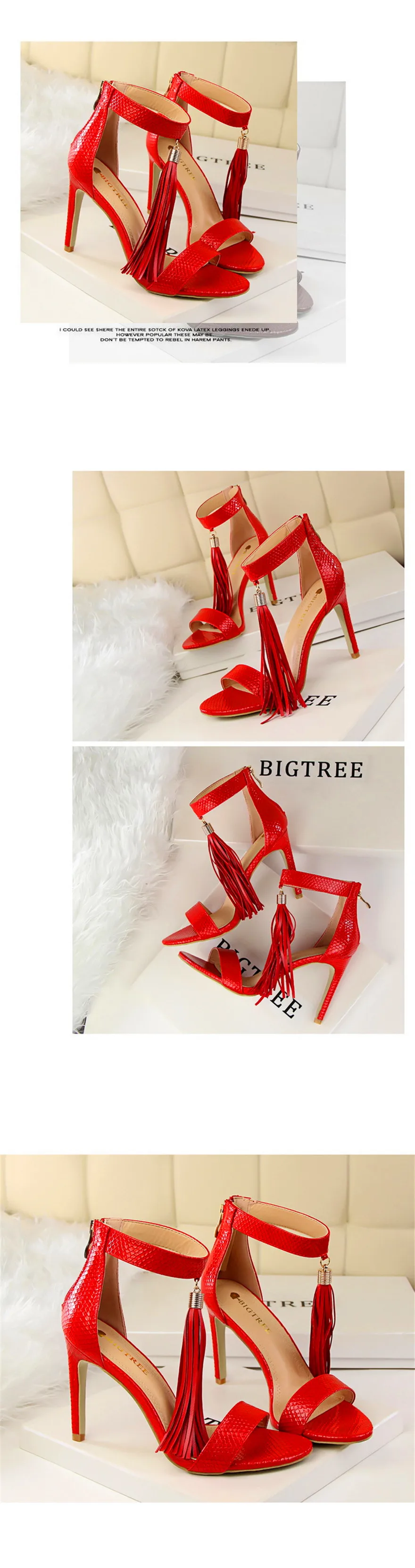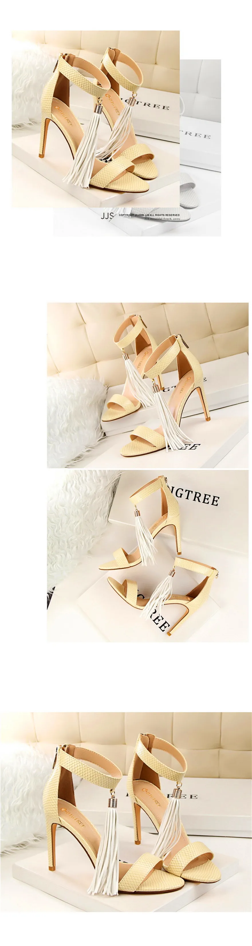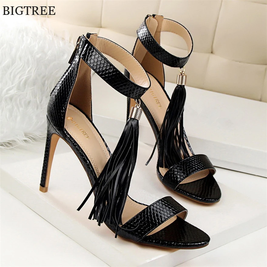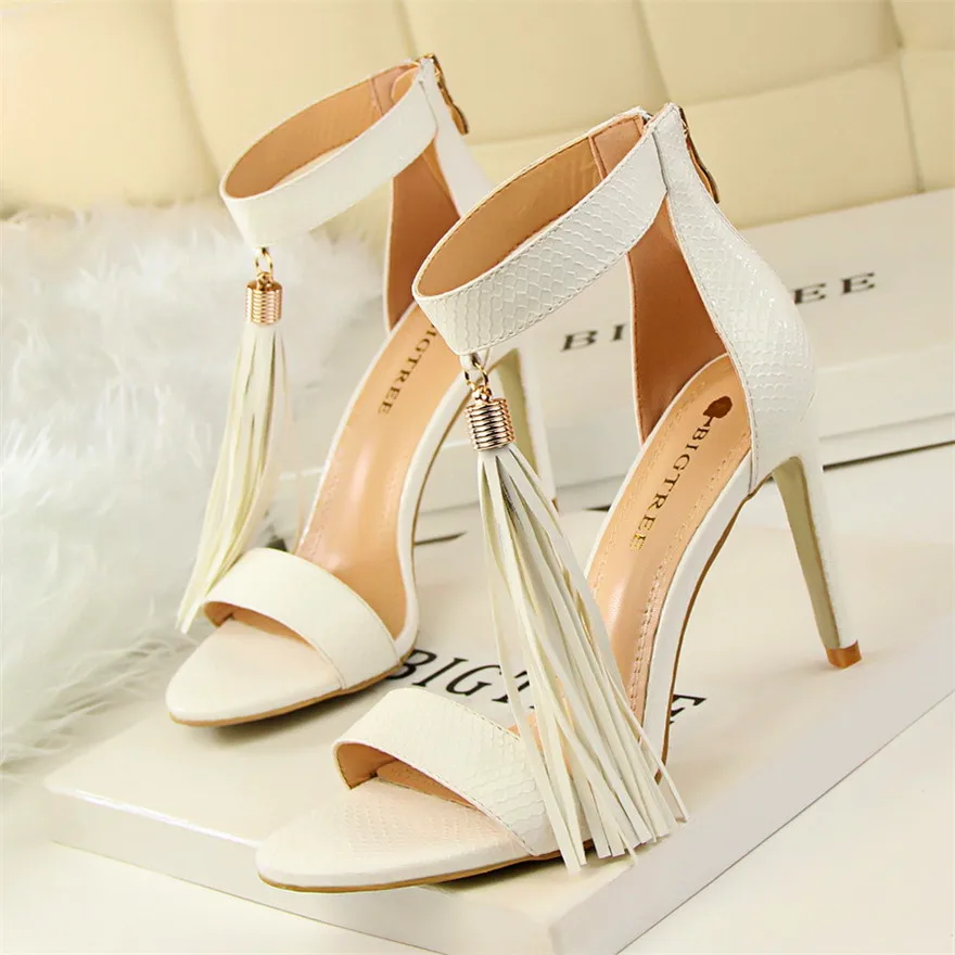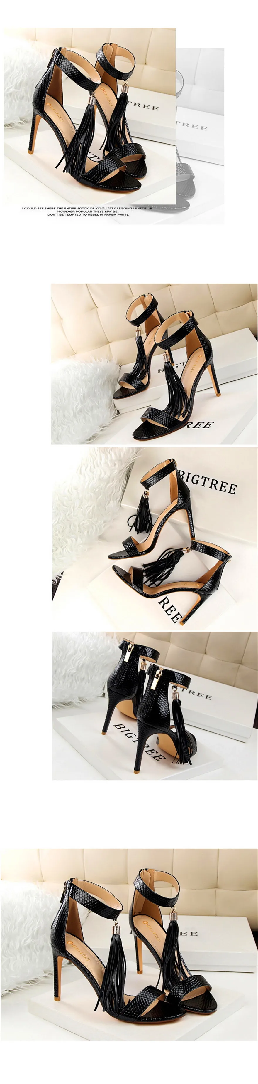 Item:Thin Heels Open Toe Fashion Fringe Sexy Serpentine Pattern Sandals