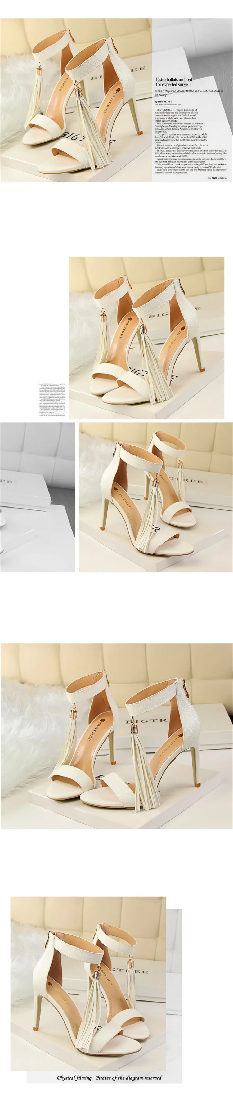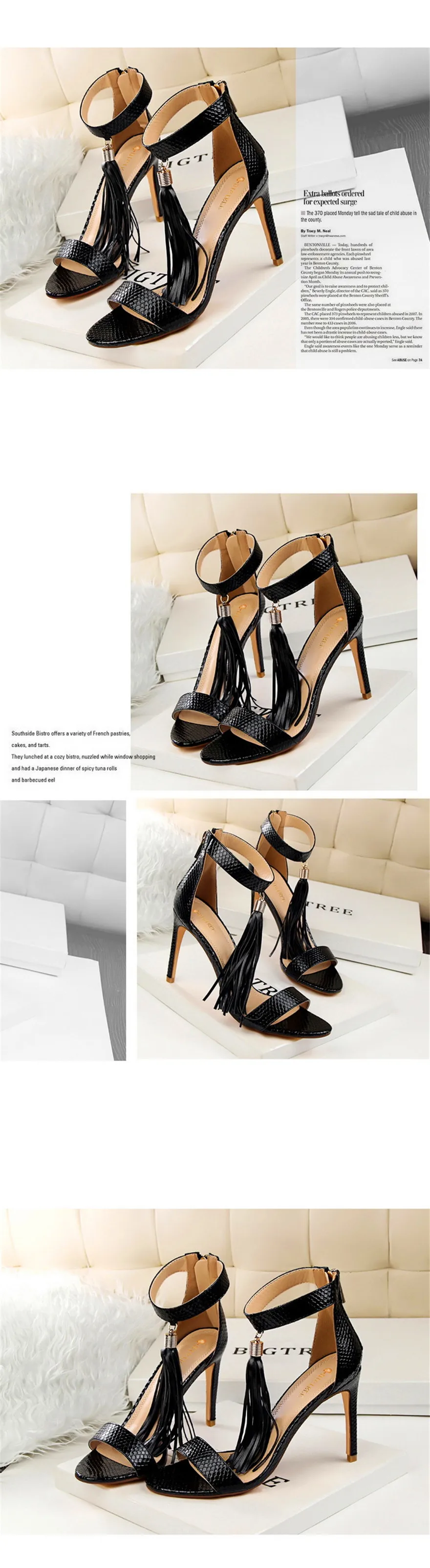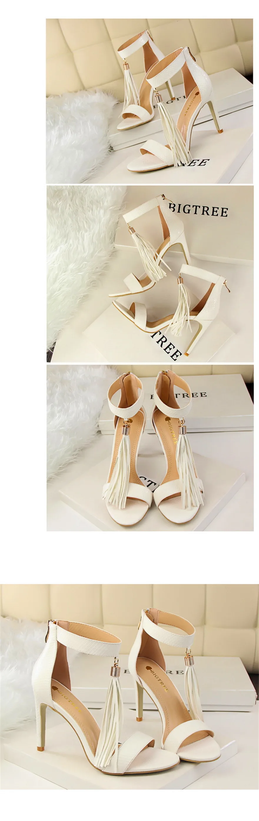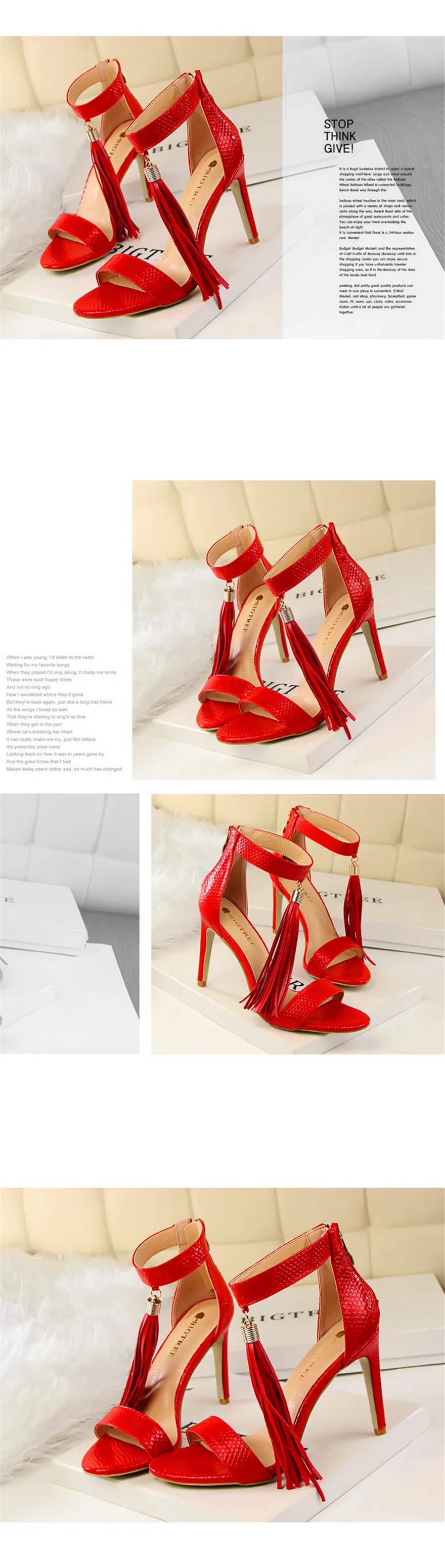 Item:Thin Heels Open Toe Fashion Fringe Sexy Serpentine Pattern Sandals