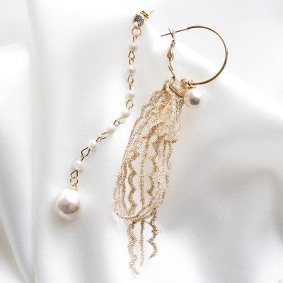 웨어러블한 스타일의 언발 귀걸이에요!러블리하고 아름다운 레이스리본이 포인트라 착용시 여성스러움이 물씬 느껴진답니다~진주와 레이스가 여성스러운 매력을 발산시켜줘요!롱 스타일의 진주귀걸이는 얼굴을 더욱 갸름하고 화사하게 만들어준답니다.무알러지 무니켈침을 사용하여 알러지걱정없이 누구나 안전하게 착용할수있어요.아르뉴에서 준비한 웨어러블 이어링을 지금바로 만나보세요!